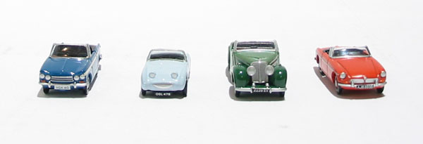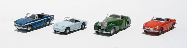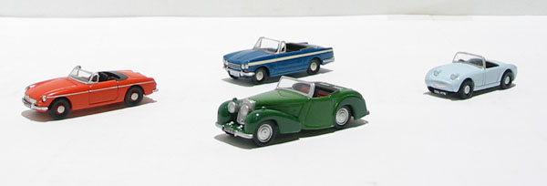 4 piece classic sports car set - MGB, Sprite, TR20 & Vitesse