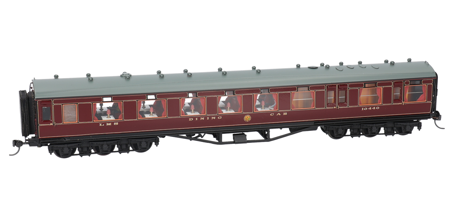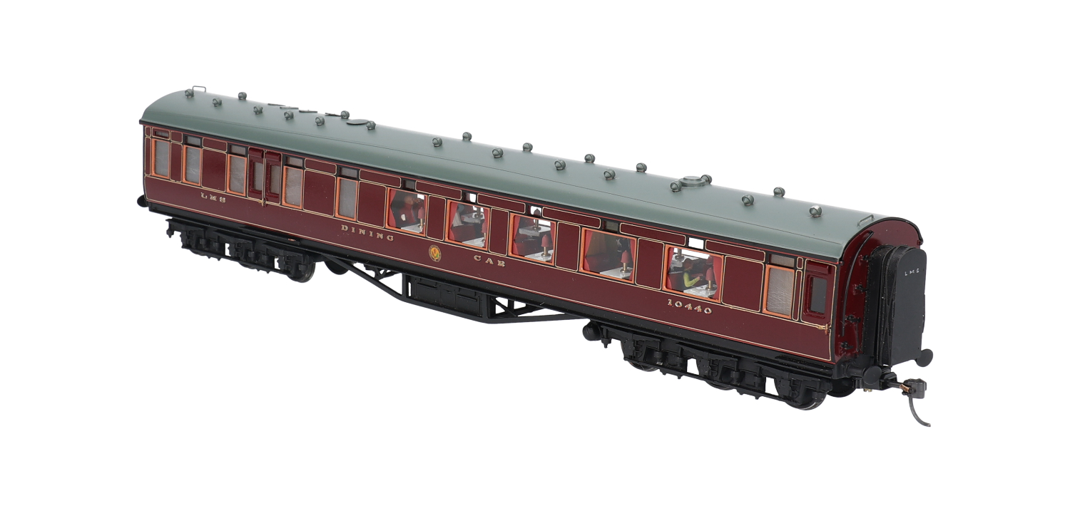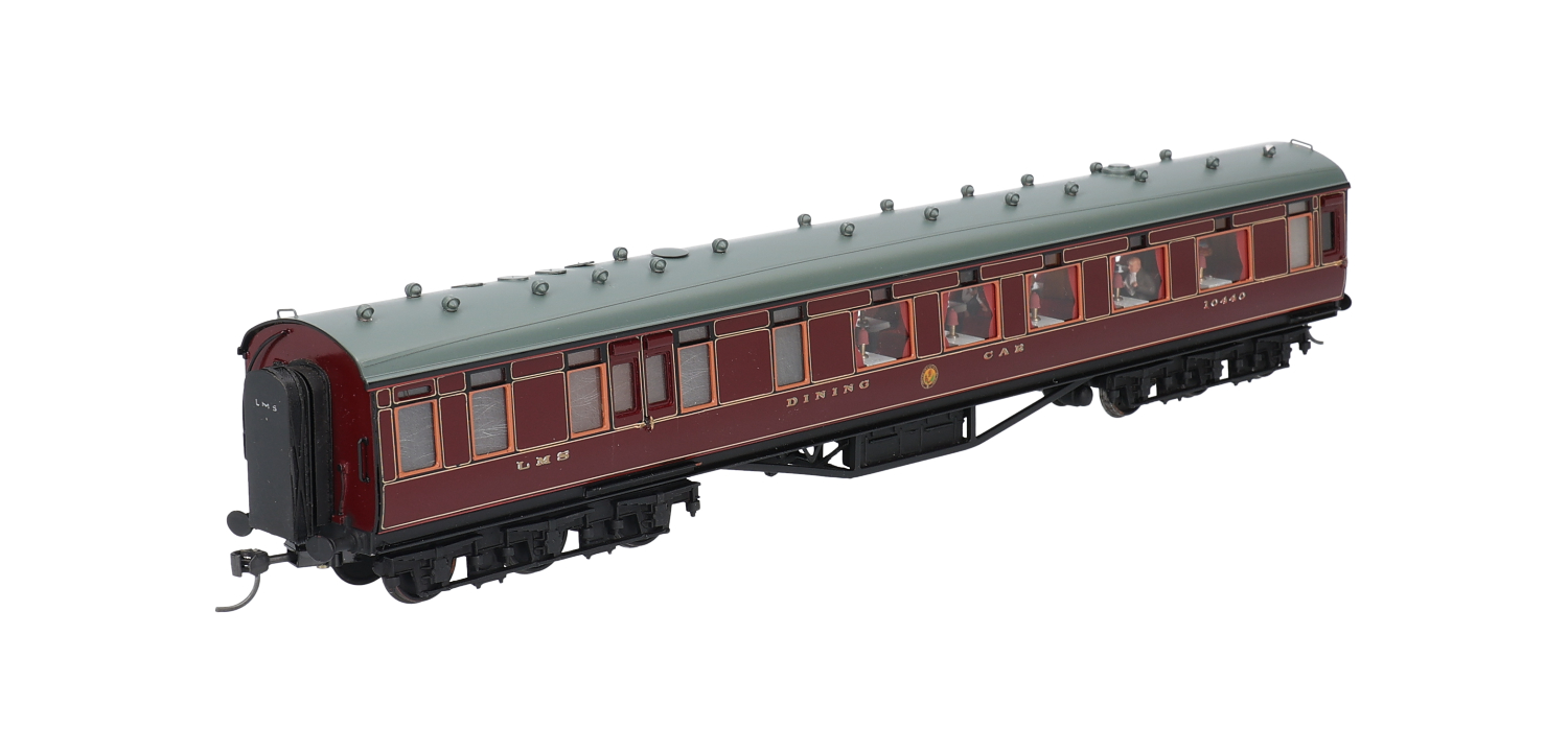 68' 12-wheel dining car 10440 in LMS crimson - professionally built and painted kit by D Lawrence & L Goddard