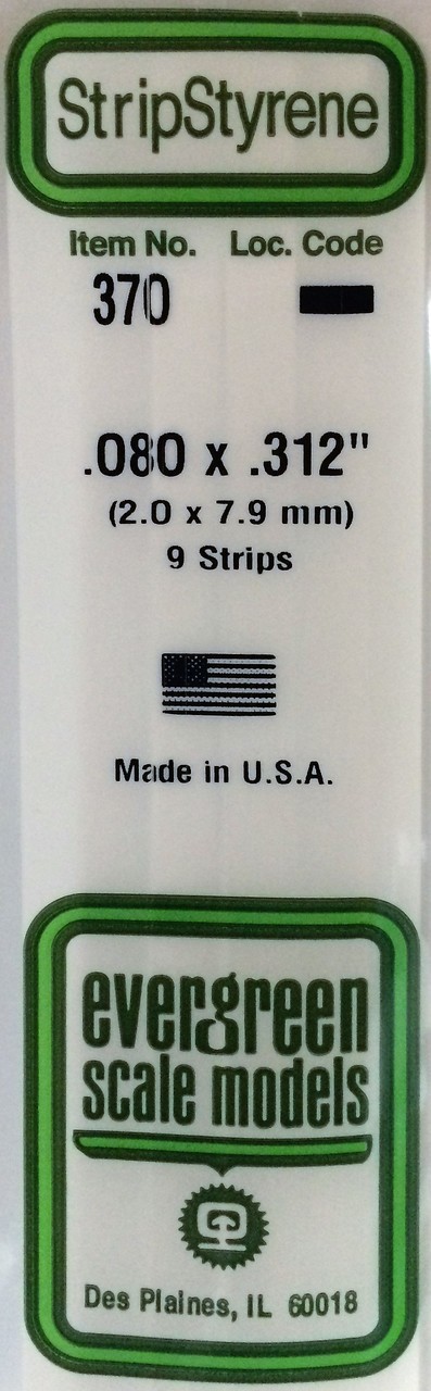 Evergreen Plastics 370EVE 24" Strip Pack .080" x .312" - pack of 9