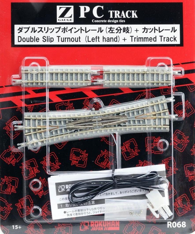 Rokuhan R068RKH PC Track Double Slip Turnout, Left Hand with Trimmed Track