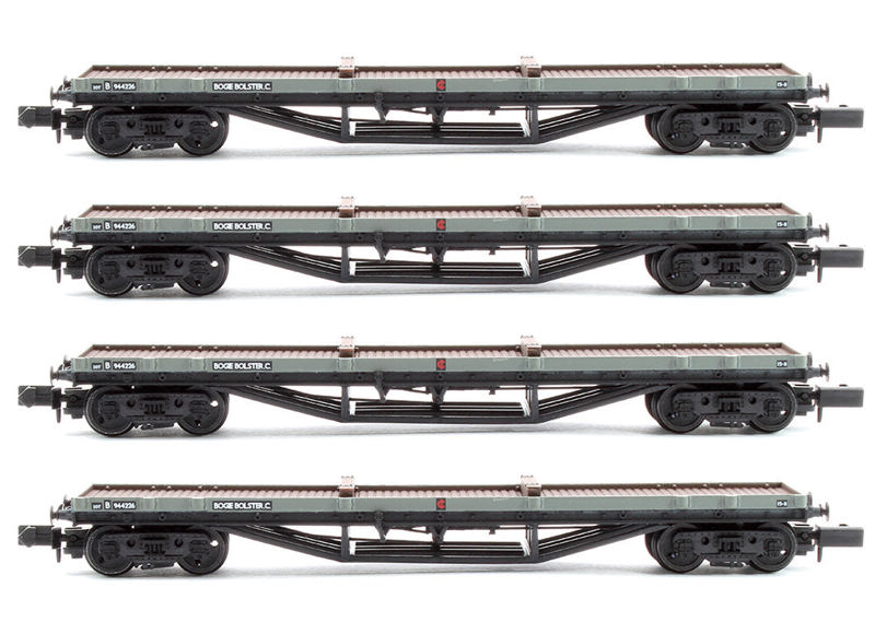 Graham Farish 373-926Fx4 Set of 4 30T 'Bogie Bolster C' Wagons BR Grey with load No. B944226