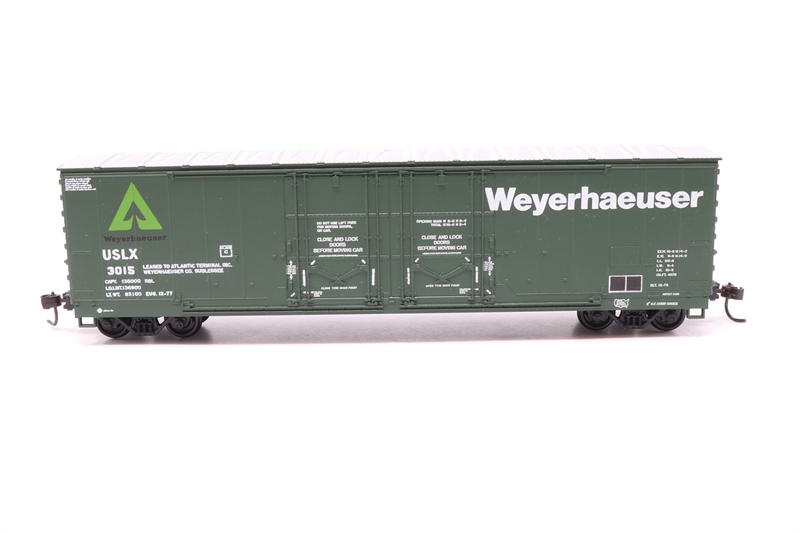 52' double-plug door boxcar of the Weyerhaeuser